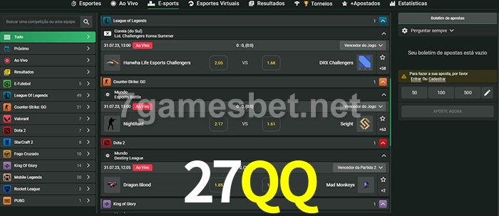 A aposta 27QQ oferece aos jogadores a experiência mais conveniente de apostas em eSports!